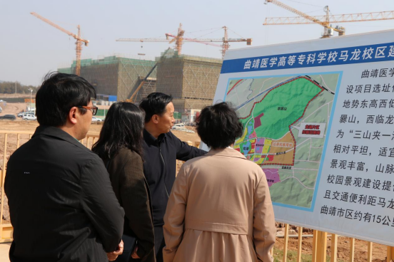 在学校领导陪同下,云南医药健康职业学院一行人参观了马龙新校区建设现场。党委书记余祖林详细介绍了马龙校区总体规划及学校未来发展愿景。余祖林表示学校将牢牢把握新时代新征程新的战略机遇,锚定升本目标、开启高质量跨越式发展新局面,为今后双方的共建共享、创新提质提供更好的平台。