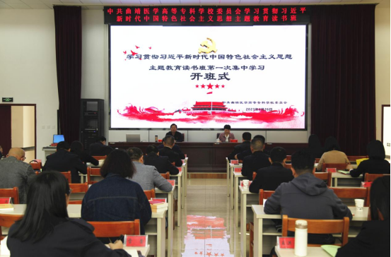 4月26日,中共曲靖医学高等专科学校委员会学习贯彻习近平新时代中国特色社会主义思想主题教育读书班第一次集中学习在曲靖市委党校开班。省委第十六巡回指导组联络员、省委组织部干部五处一级调研员包超,指导组成员、普洱市景谷县纪委监委第一纪检监察室工作人员张锦秋到场指导。党委书记余祖林作开班动员,曲靖市委党校副校长许霁主持开班仪式。