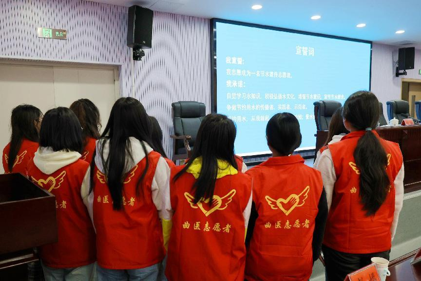 “我承诺,自觉学习水知识,积极弘扬水文化,增强节水意识,宣传节水理念,争做节约用水的传播者、实践者、示范者。”志愿者们进行了现场宣誓。