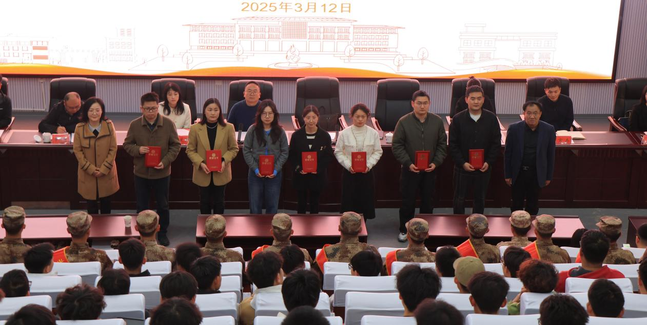 会上总结了学校2024年大学生征兵工作,宣读了2024年征兵工作先进集体和先进个人的表扬文件。主席台领导为2025年上半年“预定新兵”颁发奖牌,为2024年征兵工作先进个人及先进集体颁发证书和奖牌。