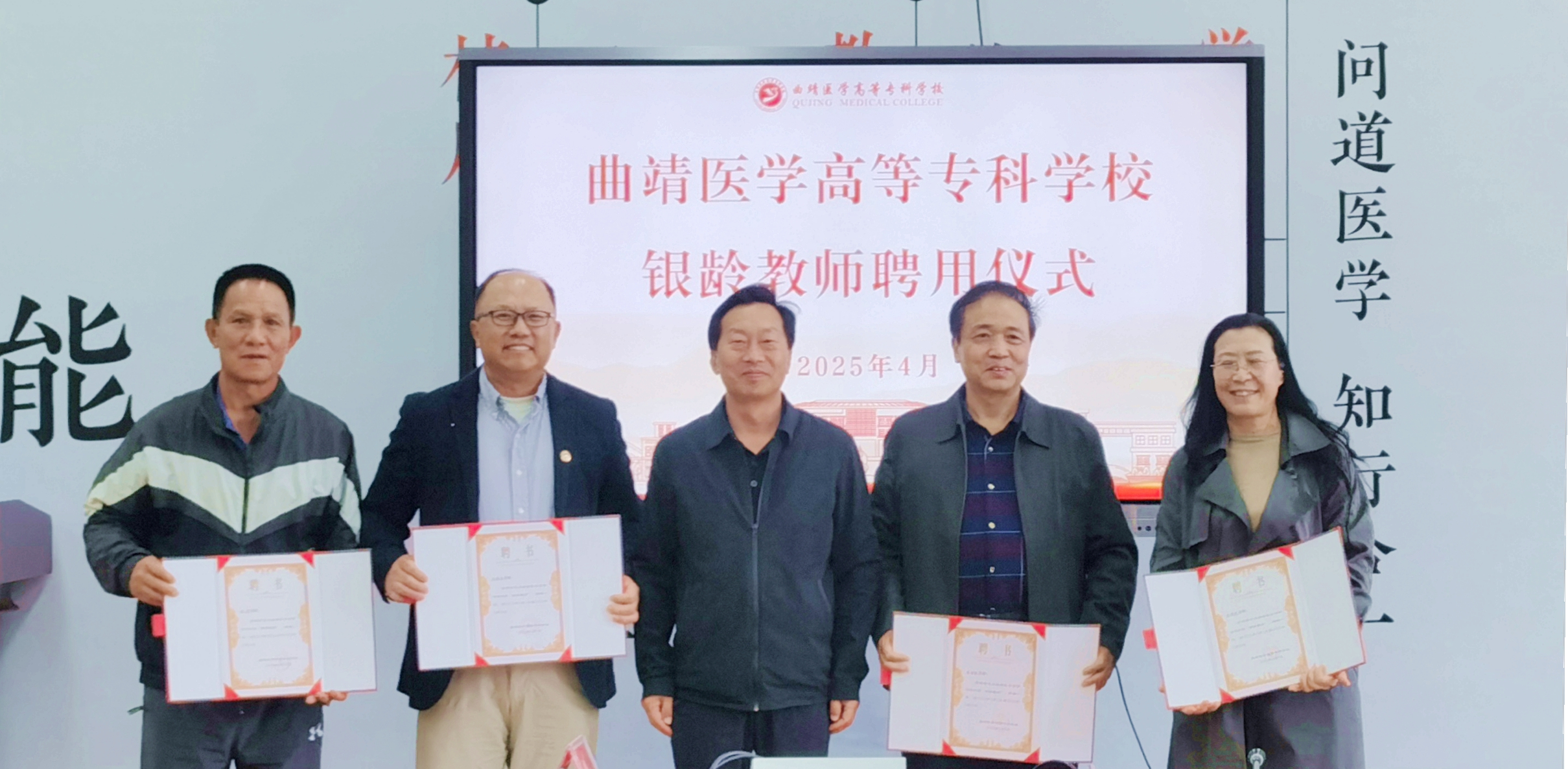 4月10日下午,学校在行健楼一楼会议室举行银龄教师聘用仪式,聘任宝福凯、吴锡南、孙学进、张耆4位教授担任曲靖医学高等专科学校银龄教师。党委书记余祖林、副校长晏廷亮、有关部门负责人和专业带头人、青年教师代表参加聘用仪式。仪式由晏廷亮副校长主持。