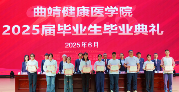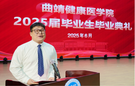 党委书记余祖林代表学校向圆满完成学业的2025届毕业生致以热烈祝贺,并深情回顾了同学们在曲医与时代同频共振的成长轨迹。余祖林强调,学校正迈向beat365英国官方网站发展新阶段,毕业生既是学校跨越式发展的见证者,更是接续奋斗的参与者。面对时代变革浪潮,余祖林以"笃定、笃行、勇敢"三重精神寄语曲医学子:要永葆"笃定"初心,在医学科技日新月异中坚守医者誓言,以终身学习回应人民健康需求;要践行"笃行"校训,在临床实践中以至诚至爱的医者情怀锤炼严谨作风,用坚韧步伐丈量医者修行之路;要锤炼"勇敢"品格,直面疾苦,追求真知、精益求精,敢为生命掌灯。他强调,曲医学子当以"健康所系、性命相托"的青春誓言和使命担当,将个人奋斗融入健康中国战略,在守护全民健康的征程中书写无愧于时代的青春答卷。最后,他以一首“砺以今朝,当以铁肩担起生命重托;踏平坎坷,誓用仁心绘就健康中国”的“壮行词”为毕业生们未来征程振臂鼓劲!