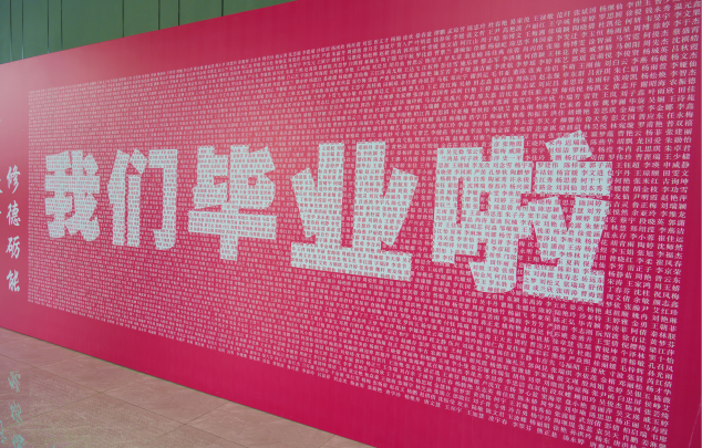 学生会堂前毕业签名板满满的仪式感。同学们驻足在毕业签名板前寻找着自己的名字,仿佛是和入学前的自己对视,也是和稚嫩的自己告别。