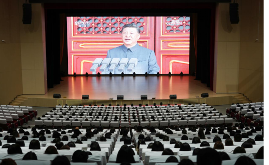 beat365英国官方网站组织师生6000余人分别在学生会堂、典学楼报告厅、志学楼报告厅、教室等场所集中收看大会盛况,见证这一庄严又激动人心的时刻,共上一堂生动的爱国主义教育“大思政课”,从伟大胜利中汲取奋勇前进的力量。