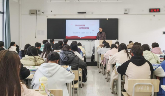11月26日,学校副校长贾丽以《不忘来时路,追梦新征程》为题,为2025级药品生产技术班的同学讲授了一堂生动而深刻的思政课。贾丽声情并茂地讲述了腊子口战役的凶险激烈和当下热播电视剧《沉默的荣耀》中吴石将军为国捐躯的故事,让同学们感知到我国今天取得成就来之不易,深刻体悟信仰的力量与担当的重量;她结合党的二十届四中全会精神,深入阐释了新时代青年在推进中国式现代化进程中的历史责任与使命担当,引导同学们坚定制度自信,把个人理想融入国家发展大局,珍惜青春时光,夯实专业基础,以先辈为榜样,在药品生产技术领域精耕细作,为健康中国建设贡献智慧与力量,书写无愧于时代的青春华章。