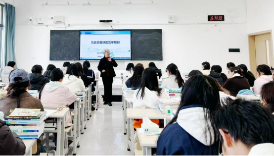 11月14日,学校副校长雍怡敏走进课堂,以《为自己做好近五年规划》为题,为2025级临床医学5班的同学们带来了一堂极具规划指导意义的思政课。雍怡敏以《中共中央关于制定国民经济和社会发展第十五个五年规划的建议》中“促进高质量充分就业”为导入,结合当前医疗卫生行业的发展趋势与“健康中国”战略对医学人才的需求,讲授同学们关切的就业与发展问题,引导同学们胸怀“国之大者”,将个人职业规划融入国家发展大局。通过讲述优秀校友扎根基层、服务群众的感人事迹,生动诠释了“小舞台”也能谱写“人生价值”的深刻道理。她勉励同学们传承医者仁心,不畏艰难,在奉献中升华职业理想。
