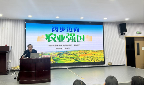11月4日,学校党委副书记桂发权以《阔步迈向农业强国》为题,为2025级针灸推拿1、2、3班的同学讲授了一堂生动的思政课。桂发权聚焦“我们为什么要加快建设农业强国、我们要建设什么样的农业强国,以及我们要怎样加快建设农业强国”三个方面,系统阐述了建设农业强国的重大意义、丰富内涵与实践路径。引导学生对建设农业强国的战略蓝图有了更清晰的认识,对自身肩负的时代责任有了更深刻的领悟。他勉励广大青年勇担时代重任,扎根基层,自觉将个人理想融入国家发展大局、乡村振兴大局,深入思考如何利用所学专业知识,努力为农业强国建设注入青春动能。