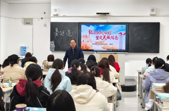 11月18日,学校副校长晏廷亮以《纪念抗战胜利 坚定民族信念》为题,为2025级护理4班的同学们讲授了一堂引人深省的思政课。晏廷亮以《形势与政策》课程教材第二讲为脉络,深入解读了伟大抗战精神的时代内涵,他注重将宏大的历史叙事与当代青年的责任担当有机连接,通过典型案例,生动剖析历史情境下的抉择与坚守。他引导同学们从教材中的史实与理论出发,延伸至对当下和平与发展议题的现实思考。最后,他勉励青年学子以史为鉴、坚定理想信念,将激昂的爱国热情转化为钻研专业知识、提升综合素养的具体行动,真正让抗战精神在青春奋斗中焕发新的时代光芒。
