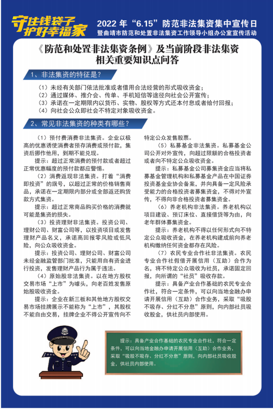 因此,请大家务必严防非法集资陷阱,拒绝高利诱惑!