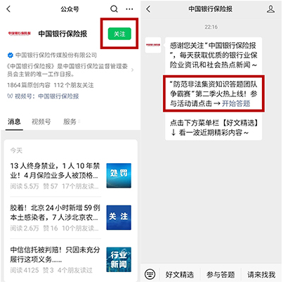 (一)活动期间,扫码或搜索关注“中国银行保险报”微信 公众号。