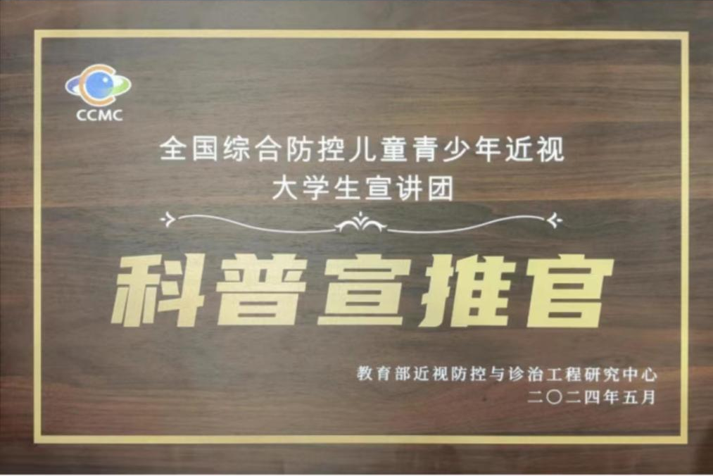 我校大学生近视防控宣讲团被授予“科普宣推官”荣誉称号