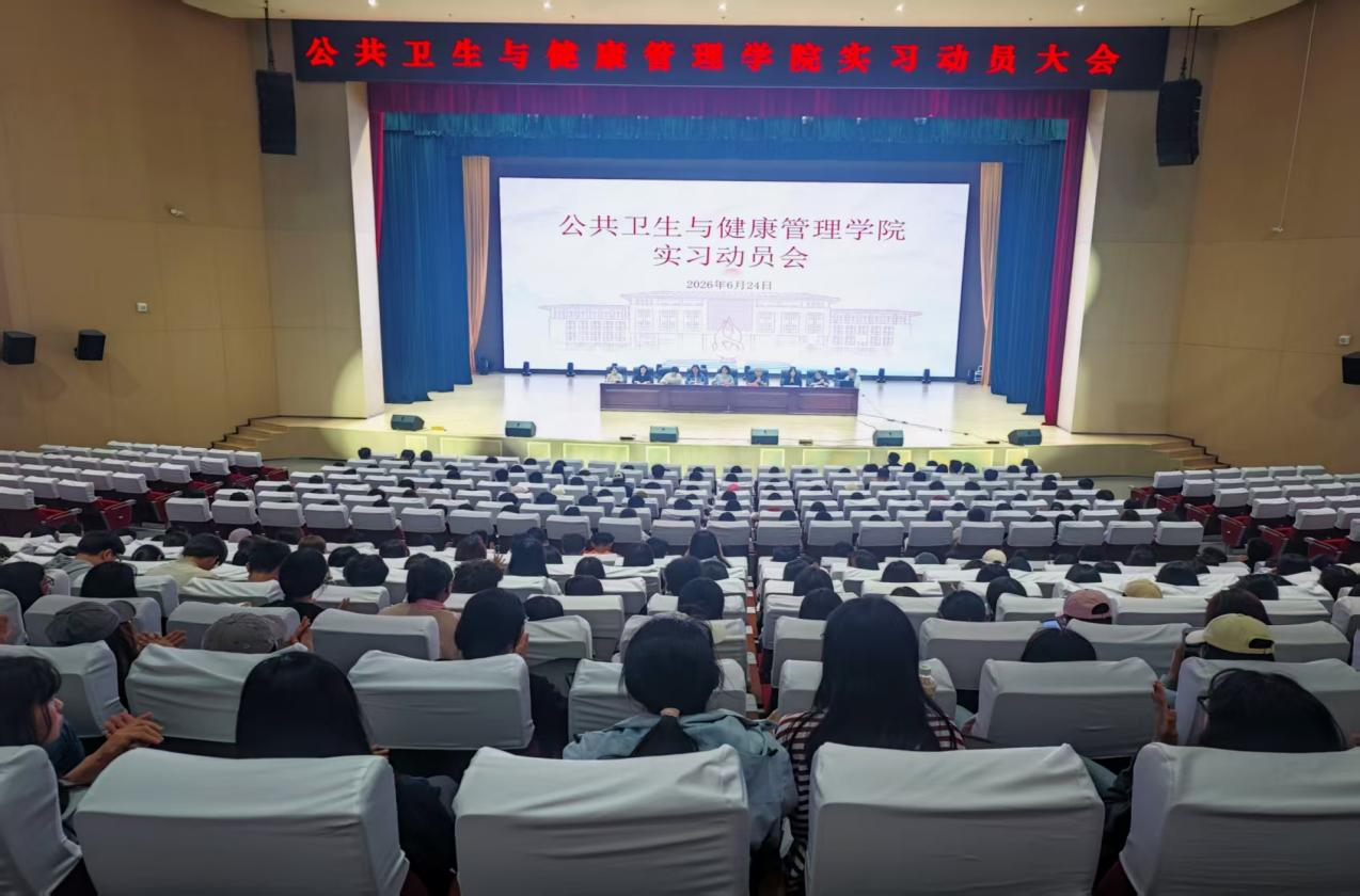 为扎实做好2023级学生实习工作,6月24日下午,公共卫生与健康管理学院在汇韵馆学生会堂举行实习动员大会。学院领导班子成员、各专业负责人、班主任及全体2023级学生参会。