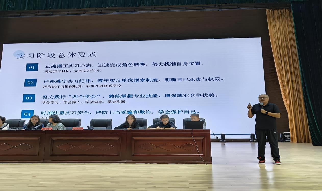学院各专业的负责人结合专业特点与行业需求,围绕实习目标、岗位要求等内容展开详细讲解,切实为同学们在实习前指明实习方向、排除实习困难。