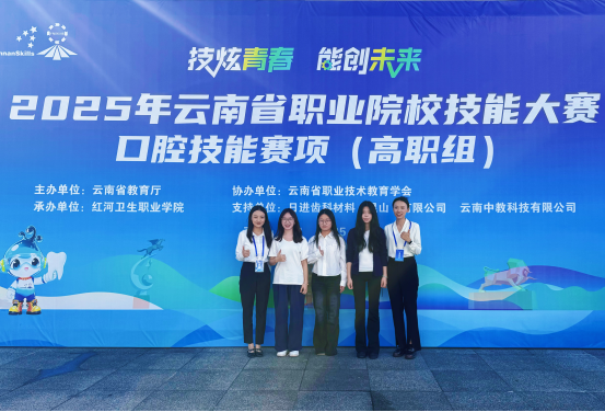 2025 年10月15日至16日,由云南省教育厅主办,红河卫生职业学院承办的2025年云南省职业院校技能大赛口腔技能赛项圆满落幕。我校口腔学院学生梁琪、潘若茜、李思琪组成的参赛队最终斩获省赛二等奖。