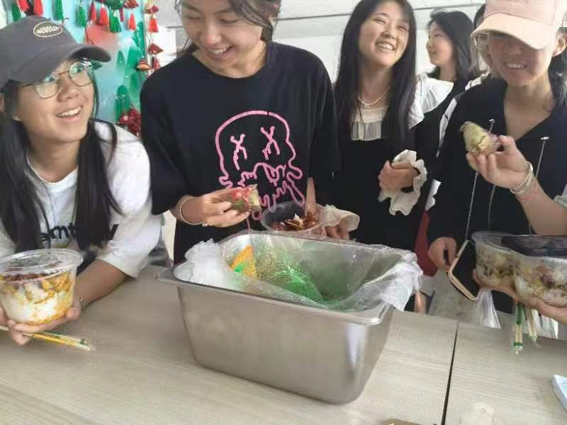 在公寓文化活动中,同学们还通过挂艾草、包粽子、赠香包和编织五彩手环等活动,在手工实践活动中追寻历史意义、感受古人智慧。