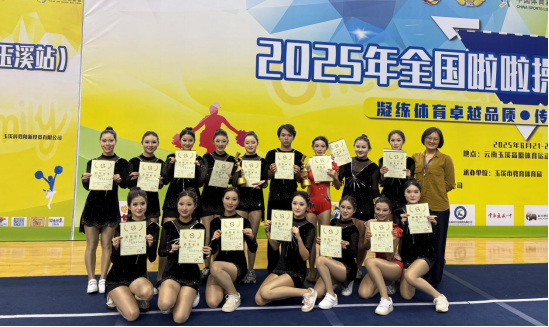 6月21-22日,2025年全国啦啦操联赛(玉溪站)在云南玉溪高原体育运动中心主体育馆正式开赛。其中,我校向阳花啦啦操代表队凭借卓越表现,脱颖而出,以“4金1银”的傲人战绩,载誉而归。