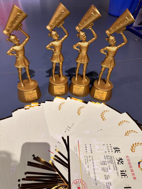 此次比赛吸引了来自全省各地的69支队伍、近千名选手齐聚于此,展开激烈角逐,共同奏响活力四射的运动乐章。赛场上,我校啦啦操队的队员们动作整齐划一、精准有力;神情昂扬自信、活力满满;团队配合默契无间,将力量与美感完美融合,以强劲的表现力征服全场。勇夺双人自编花球、自由舞蹈、啦啦操0级套路以及规定动作爵士套路2级项目4枚金牌,并在双人自编爵士项目中收获1枚银牌,在赛场上绘就独特的精彩篇章。