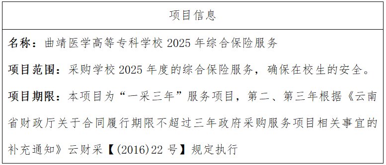 二、项目名称:曲靖医学高等专科学校2025年综合保险服务