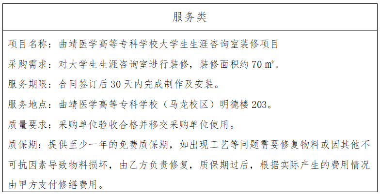 二、项目名称:曲靖医学高等专科学校大学生生涯咨询室装修项目