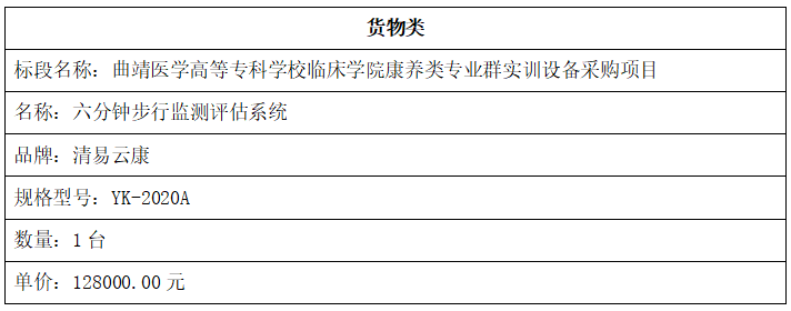 1包:曲靖医学高等专科学校临床学院康养类专业群实训设备采购项目