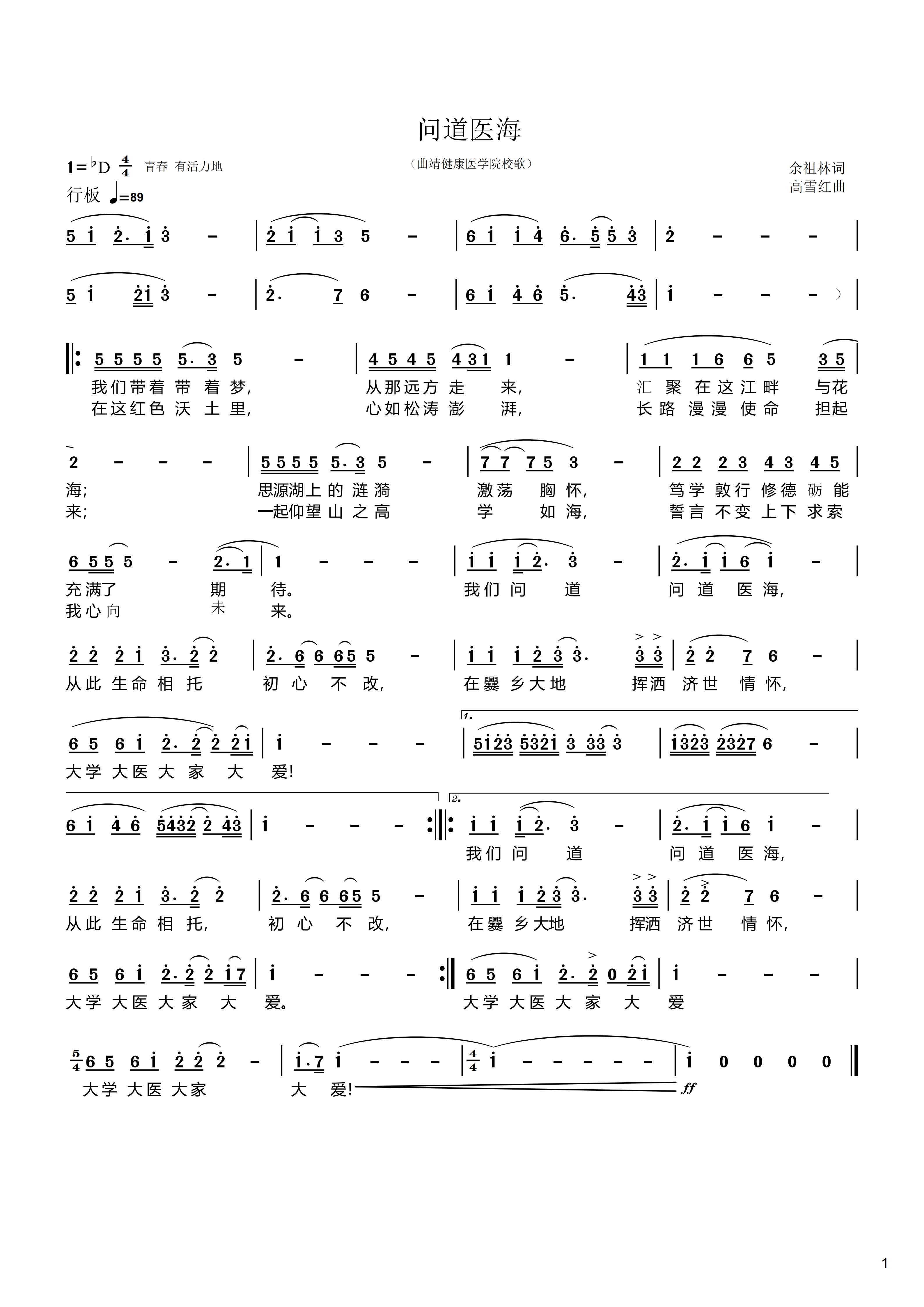 校歌:为《问道医海》,余祖林作词,高雪红作曲。